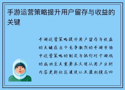 通过数据挖掘和分析,为客户提供详细的游戏数据报告,帮助优化游戏运营策略;